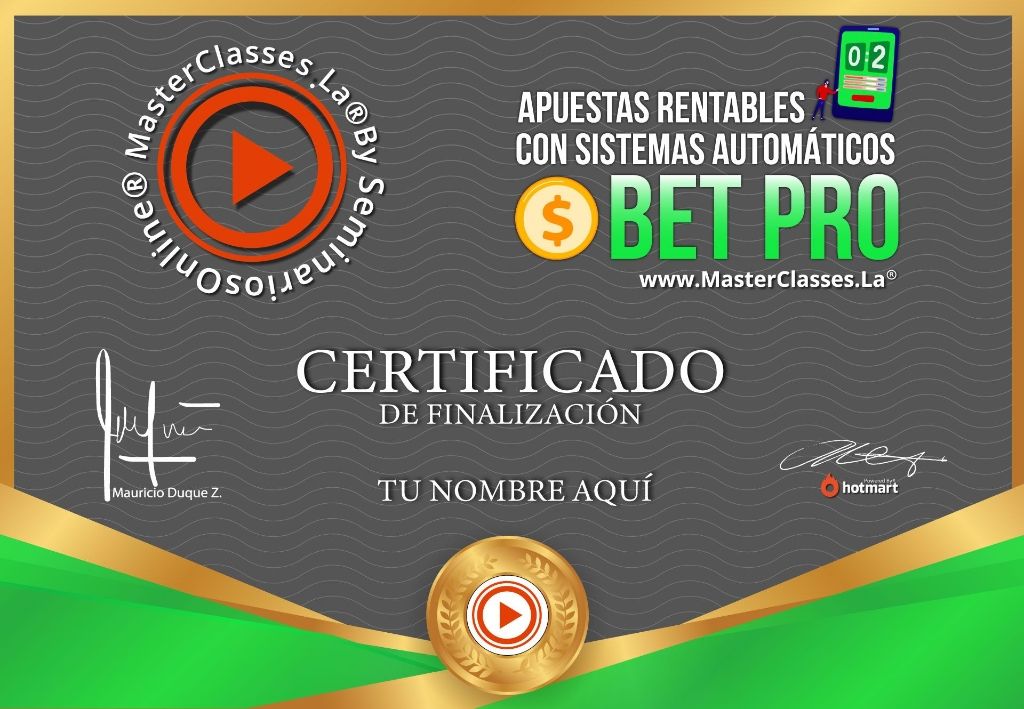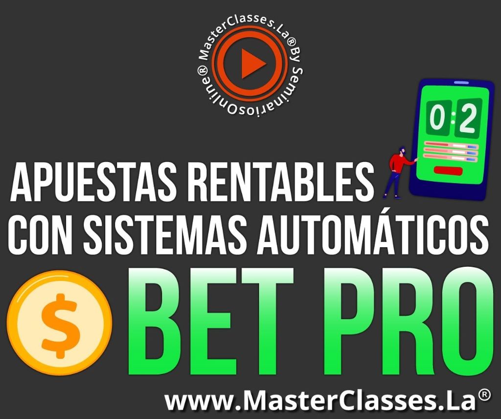 ¿Te gustaría convertirte en un inversionista exitoso en apuestas deportivas? Con el MasterClass Apuestas Rentables Con Sistemas Automáticos BET PRO podrás aprender desde cero a trabajar en las inversiones deportivas con sistemas automáticos que te garantizan altos niveles de rentabilidad. Aprenderás el mejor sistema para trabajar las inversiones deportivas, generar ingresos extras por Internet, adquirir conocimientos fundamentales en las inversiones deportivas y maximizar tus beneficios. Además, contarás con un entrenamiento enfocado en estrategias automáticas y una correcta gestión de capital. ¡No pierdas la oportunidad de convertirte en un inversionista exitoso en apuestas deportivas!