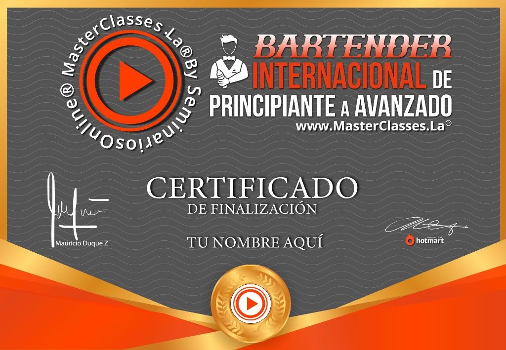 ¡Aprende las técnicas de coctelería más solicitadas en todo el mundo con el MasterClass Bartender Internacional de Principiante a Avanzado! Desarrolla y perfecciona tus habilidades en la preparación de bebidas profesionales, conoce los principales licores y su aplicación en diferentes tipos de bebidas, aprende técnicas de decoración y realiza shows atractivos para eventos. Obtén tu certificado avalado por Hotmart y Seminarios Online. ¡No pierdas la oportunidad de aprender una de las profesiones con más proyección a nivel mundial!