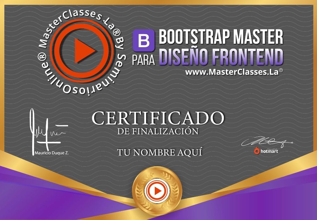 El curso “Bootstrap Master para Diseño Frontend” te ayudará a agilizar tu trabajo de diseño web. Aprenderás a utilizar uno de los frameworks frontend más populares a nivel global, lo que te permitirá montar proyectos web de forma rápida y precisa. Además, mejorarás tus habilidades de diseño frontend y ahorrarás tiempo al crear sitios web responsive. Al finalizar el curso, recibirás un certificado avalado por Hotmart y Seminarios Online. No pierdas la oportunidad de potenciar tus habilidades y destacarte en el mundo del diseño web.
