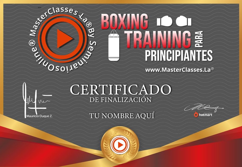 Descubre el MasterClass de BOXING TRAINING PARA PRINCIPIANTES, un programa único que te enseñará los fundamentos del boxeo para mejorar tu defensa personal y rendimiento físico. Aprenderás los golpes, movimientos y técnicas necesarias, desarrollarás tu propio estilo de combate y obtendrás rutinas de ejercicio y una dieta especializada. Mejora tu coordinación, motricidad y autoestima mientras adquieres un conocimiento más detallado sobre este deporte de combate. ¡Obtén el certificado avalado por Hotmart y Seminarios Online!