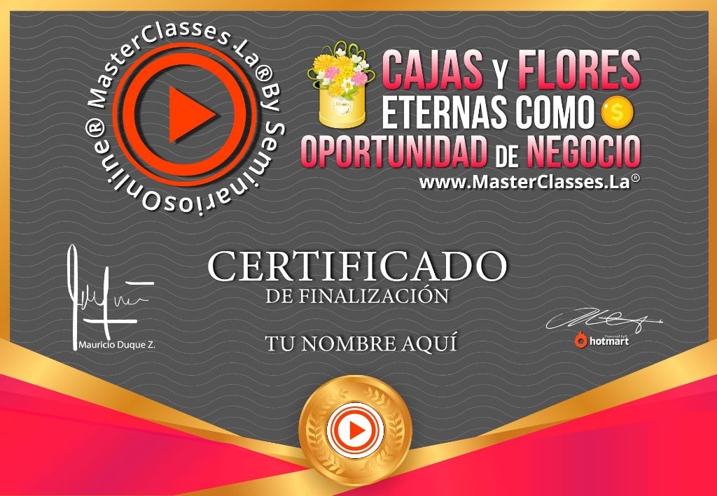 Descubre cómo crear regalos únicos y rentables utilizando flores eternas en el MasterClass “Cajas y Flores Eternas como Oportunidad de Negocio”. Aprenderás a desarrollar tu marca, crear un catálogo de productos, calcular costos de venta, tomar fotos y videos profesionales, utilizar redes sociales de manera efectiva, atender a tus clientes y fidelizarlos. Además, aprenderás a elaborar rosas y girasoles eternos, distintos tipos de cajas y arreglos en tendencia, y recibirás recursos adicionales para practicar. Obtén tu certificado avalado por Hotmart y Seminarios Online. ¡No pierdas la oportunidad de tener un negocio altamente rentable!