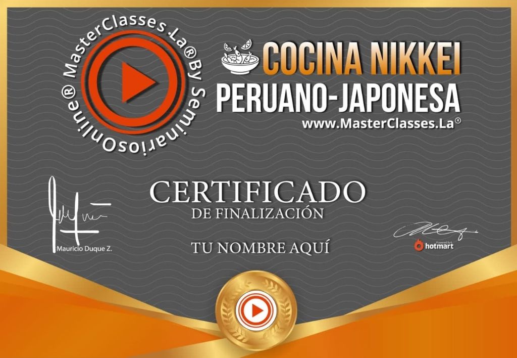 ¿Te gustaría fusionar los sabores de la gastronomía japonesa y peruana en tus platos? Con el programa COCINA NIKKEI, podrás dominar los principales platos de estas dos culturas culinarias famosas a nivel mundial. Aprenderás a preparar ceviche, arroz chaufa, sushi y muchos más, además de descubrir por qué la cocina Nikkei es reconocida internacionalmente. Con 17 módulos y bonos sorpresa, este curso te enseñará a emprender y a emplatar con alta calidad. Obtén tu certificado avalado por Hotmart y Seminarios Online. ¡No te pierdas esta oportunidad única!