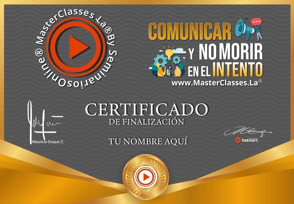 ¡Aprende a crear una estrategia de comunicación efectiva y exitosa con el MasterClass COMUNICAR Y NO MORIR EN EL INTENTO! Con este curso, desarrollado por Víctor Hugo Hoyos Montes, comunicador social y periodista, aprenderás herramientas clave para diseñar una estrategia de comunicación que haga visible tu marca. A través de contenido estructurado paso a paso, analizarás la comunicación, formularás objetivos, estructurarás los frentes de comunicación y conocerás el proceso para poner en marcha el plan de comunicación. Además, al finalizar el curso, obtendrás un certificado avalado por Hotmart y Seminarios Online. ¡No te pierdas esta oportunidad de mejorar tus habilidades de comunicación y llevar tu negocio al éxito!