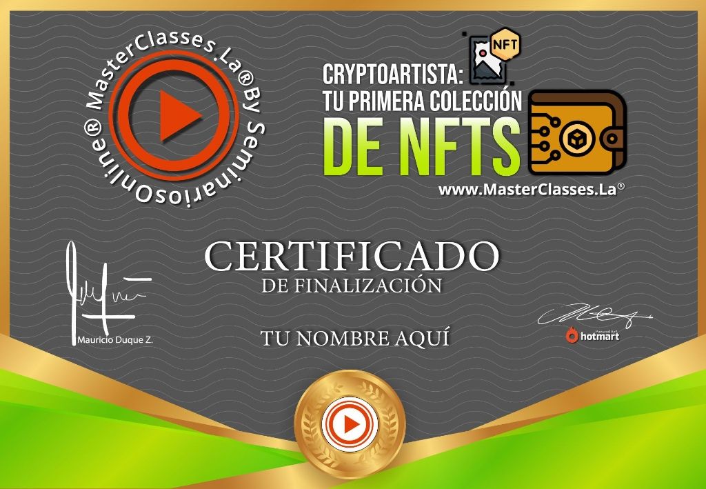 ¡Descubre el emocionante mundo de los NFTs y conviértete en un cryptoartista altamente rentable! Con esta Masterclass, aprenderás todo lo necesario para incursionar en el mercado emergente de los NFTs, creando tu primera colección de arte digital. Aprenderás desde los fundamentos de diseño hasta el manejo de herramientas como Adobe Illustrator y Photoshop. Además, conocerás cómo crear tu cryptowallet en Metamask y tu cuenta en Opensea, los principales marketplace de NFTs. No pierdas esta oportunidad única de formarte como cryptoartista y accede al certificado avalado por Hotmart y Seminarios Online. ¡Inscríbete ahora y comienza a ganar miles de dólares con tus creaciones digitales!