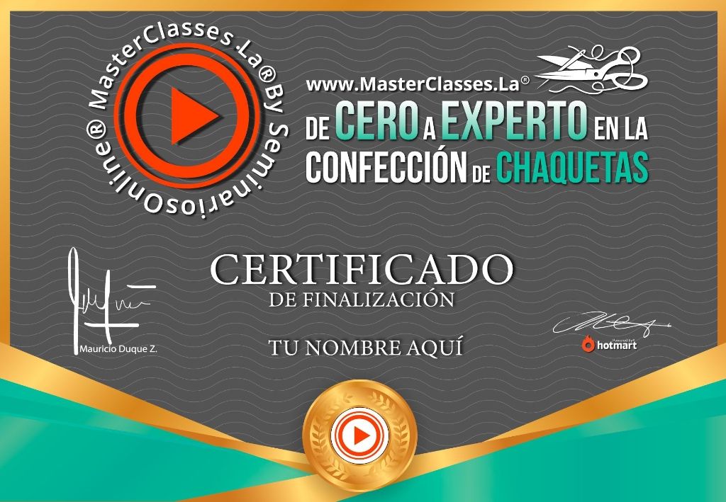 Descubre el mundo de la confección de chaquetas con el MasterClass DE CERO A EXPERTO EN LA CONFECCIÓN DE CHAQUETAS. Aprende desde cero cómo confeccionar chaquetas de moda y alta demanda, optimiza tu lugar de trabajo, crea prendas de calidad y genera ingresos desde casa. Con el certificado avalado por Hotmart y Seminarios Online, alcanzarás tu independencia y serás tu propio jefe. No pierdas la oportunidad de aprender los secretos mejor guardados de los profesionales en este maravilloso mundo de la moda.