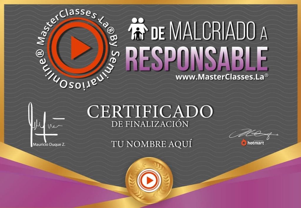 ¡Descubre el Programa DE MALCRIADO A RESPONSABLE y transforma la vida de tus hijos! Aprende a fortalecer hábitos positivos desde la niñez, desarrollar agendas productivas y orientar a tus hijos hacia una personalidad única con objetivos claros. Identifica conductas específicas, modifícalas desde el amor y sé parte del desarrollo de tu hijo. Obtén un certificado avalado por Hotmart y Seminarios Online. ¡No te pierdas esta oportunidad de crecimiento personal y familiar!