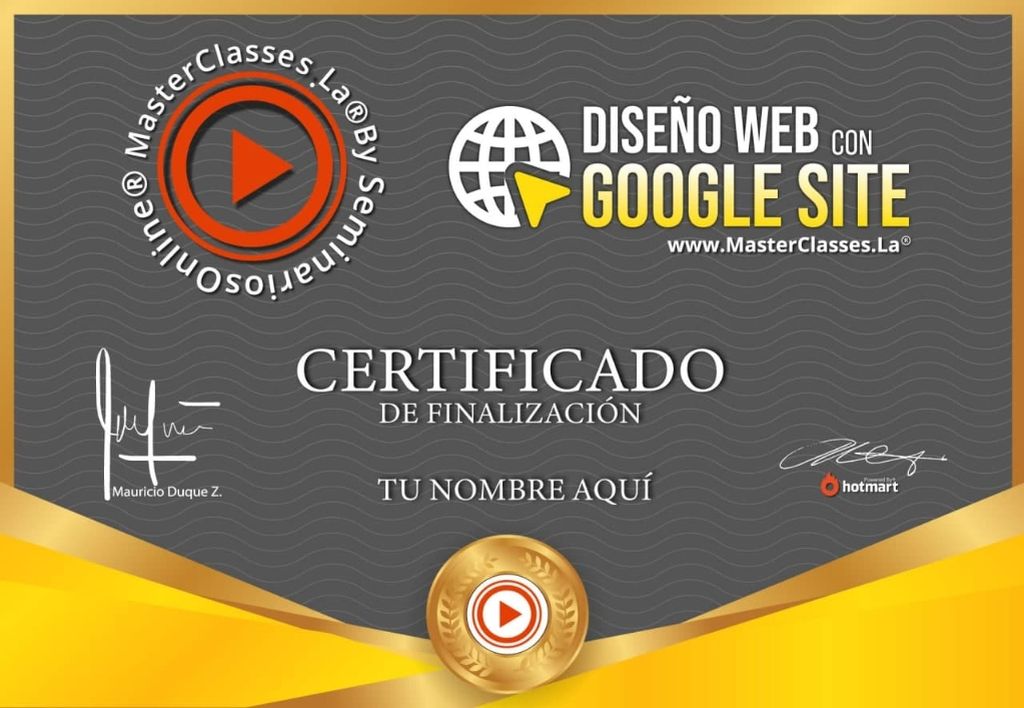 ¡Aprende a crear tu propia página web de manera profesional y sin conocimientos de programación con el MasterClass de Diseño Web con Google Sites! En este curso, desarrollado por Ivan Piruch, experto en computación gráfica y desarrollo web, aprenderás paso a paso cómo crear y personalizar tu sitio web utilizando la plataforma de Google Sites. Además, aprenderás a crear logotipos, formularios de contacto y a publicar tu sitio web en internet. Con este curso, obtendrás un certificado avalado por Hotmart y Seminarios Online. ¡No pierdas la oportunidad de adquirir estas habilidades y destacar en el mundo digital!