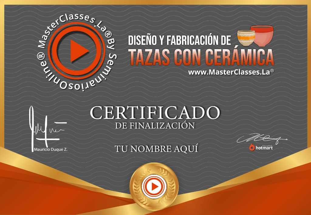 ¿Imaginas poder crear tus propias tazas desde cero? En el MasterClass Diseño y Fabricación de tazas con cerámica, aprenderás paso a paso y técnicas para convertirte en un especialista en este arte terapéutico. Conocerás todo sobre la arcilla, aprenderás diferentes técnicas de modelado y decoración, y recibirás consejos para emprender tu propio negocio. Además, tendrás acceso a actualizaciones futuras y recibirás un certificado avalado por Hotmart y Seminarios Online. No pierdas la oportunidad de convertir tu pasión en un ingreso extra. ¡Inscríbete ahora!