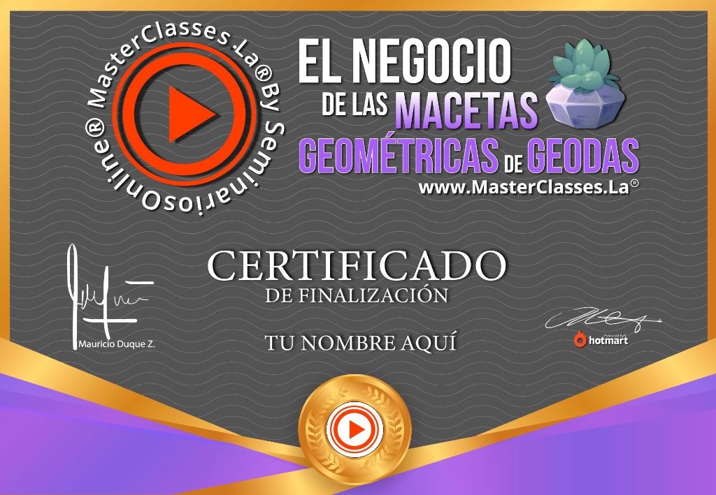 Descubre el fascinante mundo de las macetas geométricas con el MasterClass EL NEGOCIO DE LAS MACETAS GEOMÉTRICAS DE GEODAS. Aprende a crear réplicas únicas con diferentes cristales y conviértete en un profesional en diseño minimalista y moderno. Conoce los materiales y herramientas adecuadas, explora nuevos nichos de mercado y obtén un certificado avalado por Hotmart y Seminarios Online. ¡No te pierdas esta oportunidad de emprender en el negocio de la decoración de macetas geométricas!