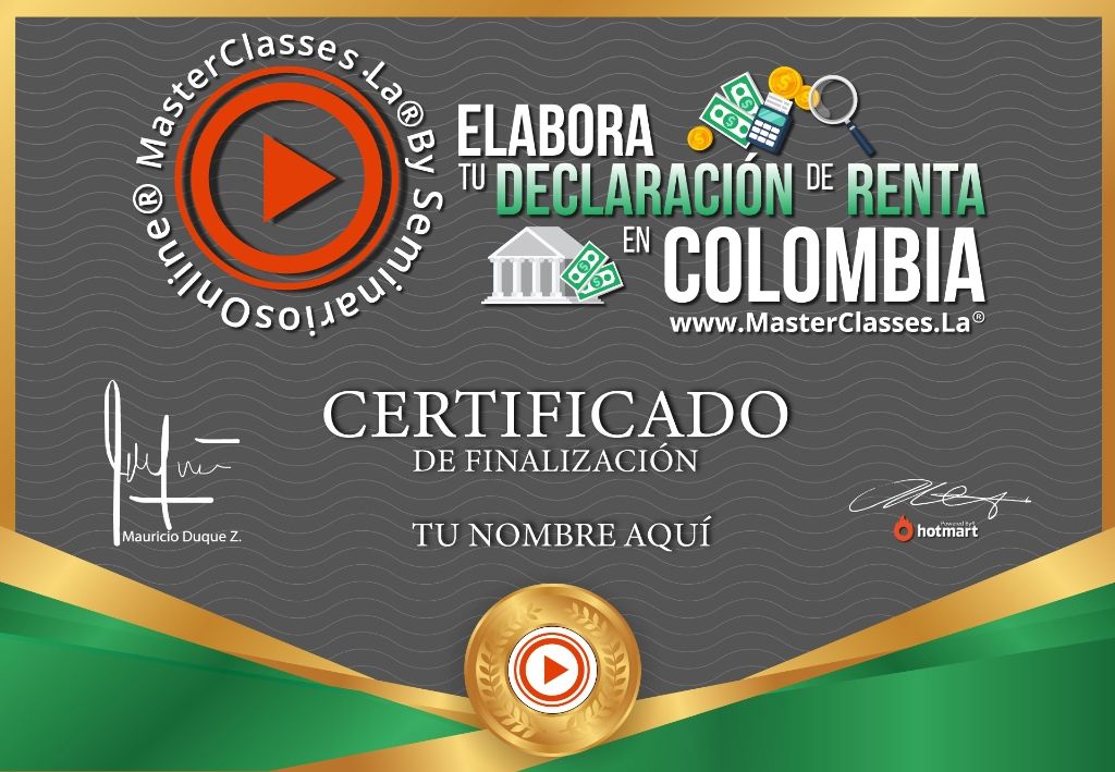 ¿Quieres evitar preocupaciones y presentar tu declaración de renta en Colombia de manera fácil y desde casa? Con el MASTER CLASS ELABORA TU DECLARACIÓN DE RENTA EN COLOMBIA, aprenderás paso a paso cómo elaborar, presentar y firmar tu declaración de renta. Conocerás tus responsabilidades fiscales, aprenderás sobre conceptos clave como el RUT, patrimonio e ingresos, y calcularás tu impuesto de manera precisa. Además, aprenderás sobre deducciones, rentas exentas y costos deducibles. Obtendrás un certificado avalado por Hotmart y Seminarios Online. No esperes más y prepárate para presentar tu declaración de renta sin preocupaciones.