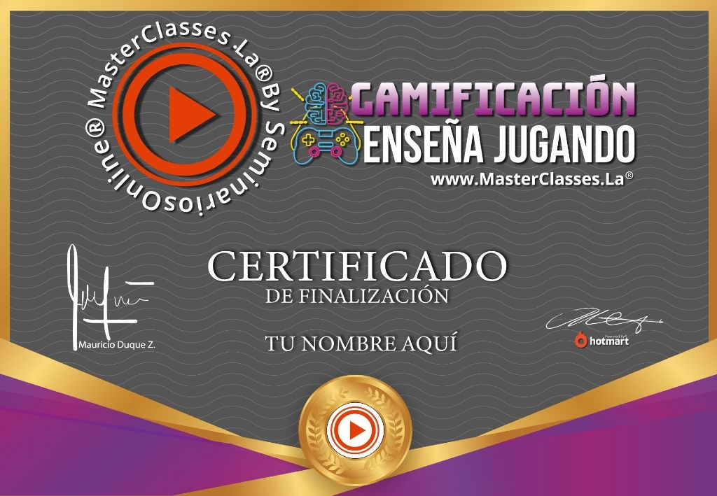 ¡Descubre el poder de la gamificación en el curso “GAMIFICACION: ENSEÑA JUGANDO”! Aprende a hacer clases divertidas y efectivas utilizando la tecnología como tu aliado. Conoce el contexto histórico de la gamificación, crea tu propia página web para enseñar, explora el papel del estudiante como protagonista del aprendizaje y descubre técnicas y herramientas para gamificar tus clases. Además, aprenderás a crear juegos con Genially, Cerebriti y Kahoot, y a utilizar una red social diseñada para la enseñanza. Obtén tu certificado avalado por Hotmart y Seminarios Online. ¡No te pierdas esta oportunidad de transformar la forma en que enseñas!