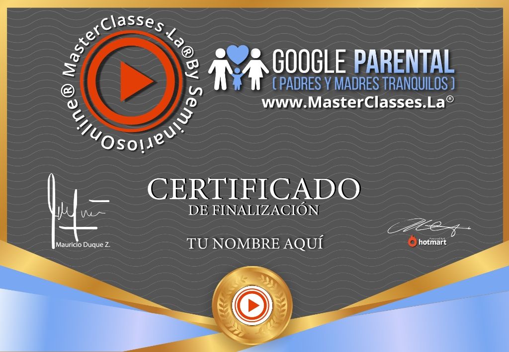 El curso “Google Parental: Padres y Madres Tranquilas” te enseñará a crear hábitos digitales saludables para tu familia. Aprenderás a guiar a tus hijos en el consumo de contenido de calidad, administrar las aplicaciones en sus dispositivos móviles y controlar su horario de uso. Además, podrás conocer su ubicación a través del dispositivo móvil y gestionar todo lo que consumen desde internet. Obtendrás un certificado avalado por Hotmart y Seminarios Online. Desarrollado por Raul Mauricio Oidor Lozano, un experto en productividad y seguridad con más de 20 años de experiencia.