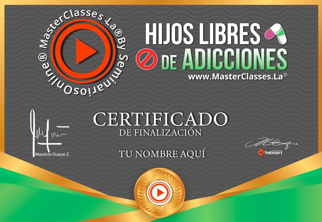 ¿Te preocupa la adicción de tu hijo? Con el MasterClass HIJOS LIBRES DE ADICCIONES, aprenderás las herramientas necesarias para apoyar su proceso de sanación y recuperar su futuro. Identificarás si ha sido víctima de las drogas, adquirirás las herramientas adecuadas para abordar la situación y aumentarás tu autoestima. Aprenderás a crear un ambiente de armonía y límites, y a acompañarlo en su proceso de sanación. Además, entenderás cómo ayudarlo a construir un plan de vida alineado con su propósito y cómo mantenerlo alejado de las drogas. Obtén el certificado avalado por Hotmart y Seminarios Online. ¡No pierdas la oportunidad de rescatar la vida y el futuro de tu hijo!
