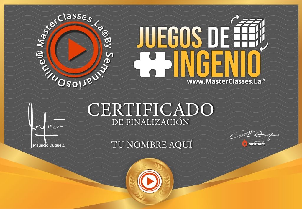 ¡Descubre el MasterClass, JUEGOS PARA LA INTELIGENCIA! Con más de 18 juegos distintos, este curso te convertirá en un verdadero CRACK DE LA DIVERSIÓN. Aprenderás juegos de ingenio y apuestas de bar para entretener y divertir a tus acompañantes, adquirirás destrezas para socializar y utilizarás materiales simples como papel, galletas, monedas y más. Además, obtendrás un certificado avalado por Hotmart y Seminarios Online. ¡No te pierdas la oportunidad de aprender a resolver el cubo de Rubik en tan solo 7 pasos! Con 47 vídeos en total, este curso es desarrollado por Juan Manuel Marcos, un ilusionista profesional y aficionado a los juegos de ingenio desde 1994. ¡Inscríbete ahora y despierta tu inteligencia mientras te diviertes!