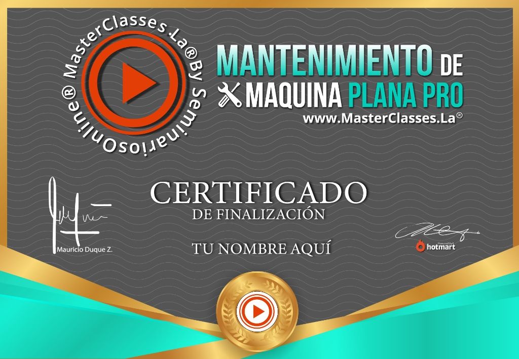 ¡Aprende a hacer mantenimiento de máquinas de coser y evita que se descompongan por falta de cuidado! Con el masterclass “Mantenimiento de Máquina Plana Pro”, tendrás acceso a un entrenamiento grabado en video de Alta Definición, donde podrás aprender paso a paso cómo realizar el mantenimiento de tu máquina de coser plana. Además, recibirás actualizaciones del curso y una conferencia de crecimiento y mentalidad ganadora que te impulsará a tomar acción. No dejes que tu producción se detenga, ¡aprovecha esta oportunidad única de aprender y crecer en tu negocio!