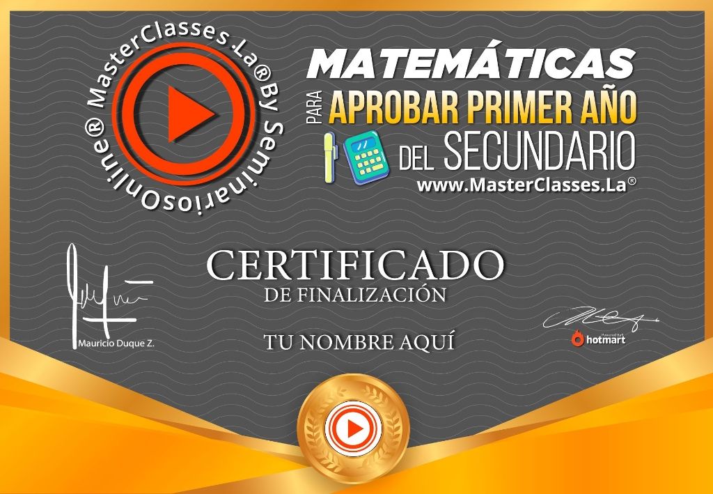 ¡Aprende matemáticas de forma entretenida y aprueba primer año del secundario con el MasterClass “Matemáticas para aprobar primer año del secundario”! Con este curso, podrás estudiar por tus propios medios y sin depender de otras personas, ahorrando tiempo y dinero en clases particulares. Aprenderás de manera ordenada y fácilmente todos los temas de primer año de matemáticas, mejorarás tu capacidad de resolución de problemas, resolverás operaciones y ecuaciones con mayor velocidad, fortalecerás tu autoestima y obtendrás un certificado avalado por Hotmart y Seminarios Online. ¡No pierdas la oportunidad de mejorar tus habilidades matemáticas y alcanzar el éxito académico!