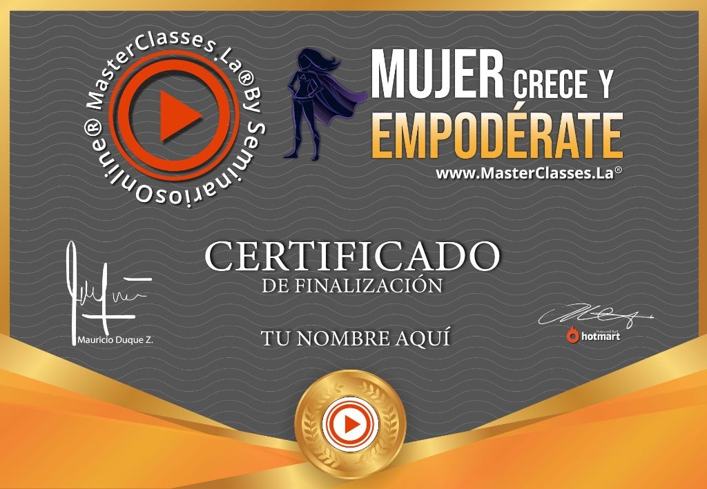 ¡Descubre el poder del empoderamiento femenino con el MasterClass MUJER CRECE Y EMPODÉRATE! Aprende a desarrollar tu fuerza interior, fortalecer tu autoestima y gestionar tus emociones de manera efectiva. Conoce las claves para el liderazgo femenino, el trabajo en equipo y el éxito en el emprendimiento. Obtén el certificado avalado por Hotmart y Seminarios Online. ¡No te pierdas esta oportunidad de crecimiento personal y profesional!
