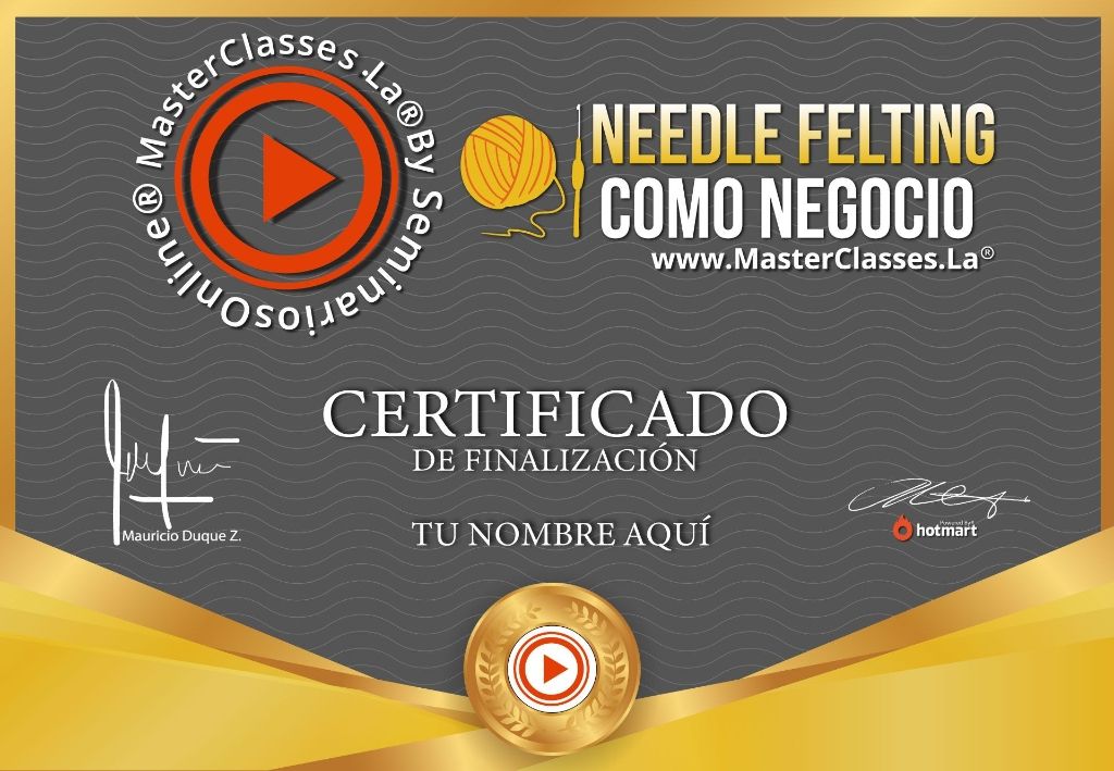Este curso de Needle Felting como Negocio te enseñará paso a paso cómo crear réplicas realistas de animales y personajes que te gusten. Aprenderás las técnicas necesarias para emprender tu propio negocio a nivel internacional, poniendo precios a tus creaciones. Al finalizar el curso, recibirás un certificado avalado por Hotmart y Seminarios Online. No pierdas la oportunidad de convertirte en una experta en este arte y comenzar a ganar dinero haciendo lo que amas.