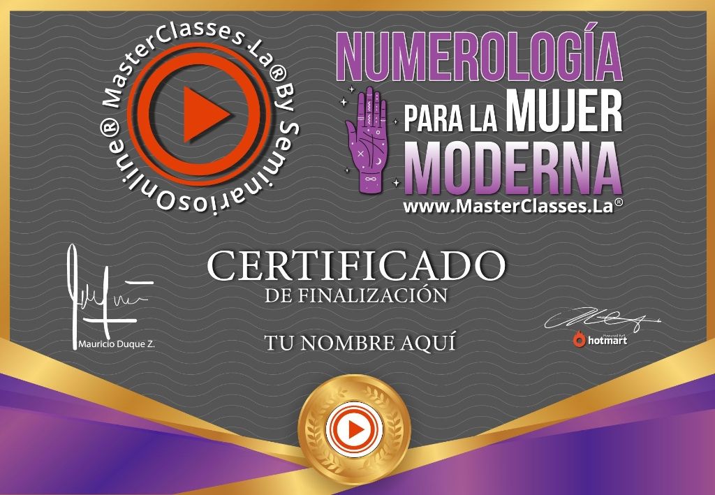 ¡Descubre el poder de la numerología y conecta con otras personas de manera consciente y práctica! Con el MasterClass “Numerología para la Mujer Moderna”, aprenderás a tomar decisiones basadas en la numerología y abrirás tu consciencia hacia tu realidad actual. En este curso, encontrarás respuestas que te apoyarán en todas las áreas de tu vida, te acercarás a tu propósito de vida, intuición y creencias limitantes. Además, obtendrás un certificado avalado por Hotmart y Seminarios Online. No pierdas la oportunidad de transformar tu vida con esta poderosa herramienta. ¡Inscríbete ahora!