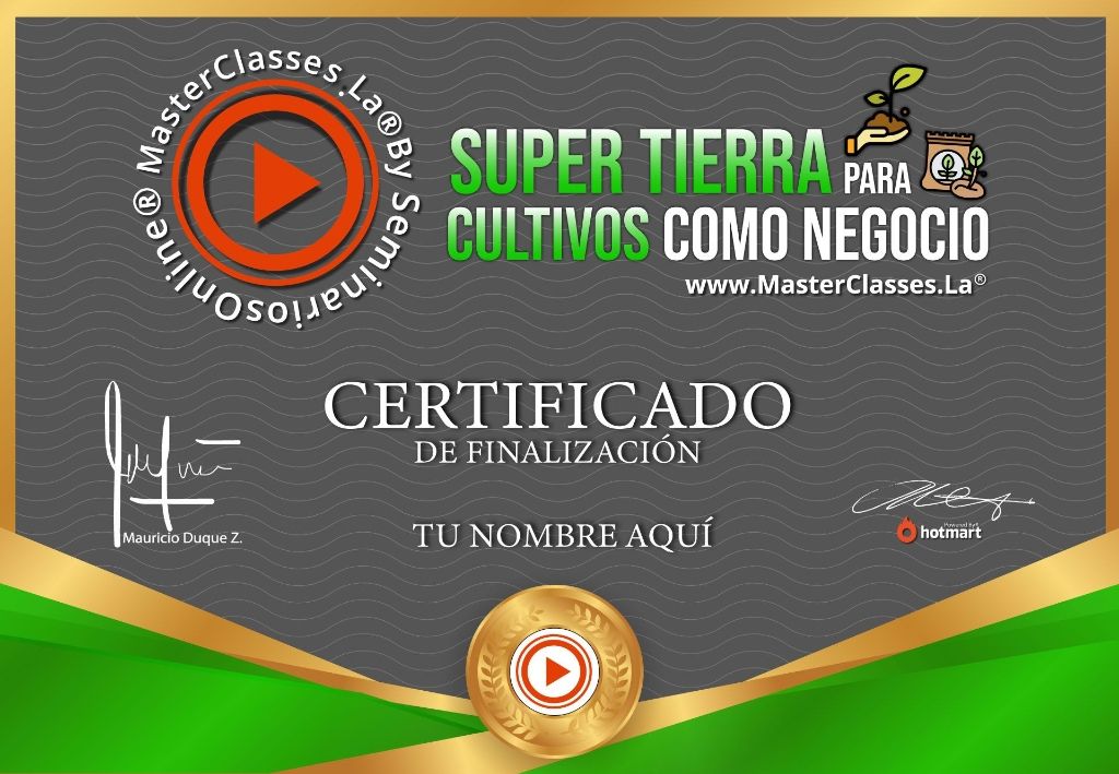 ¡Aprende a crear SÚPER TIERRA para maximizar el cultivo de plantas orgánicamente! Con el MasterClass SUPER TIERRA PARA CULTIVOS COMO NEGOCIO, descubrirás cómo formular y producir super tierra para todo tipo de plantas. Aprenderás sobre la composición de la super tierra, consejos para iniciar tu negocio de jardinería y venta de super tierra, y cómo rentabilizar tus conocimientos. Obtén un certificado avalado por Hotmart y Seminarios Online. ¡No te pierdas esta oportunidad de emprender en el mundo agrícola!