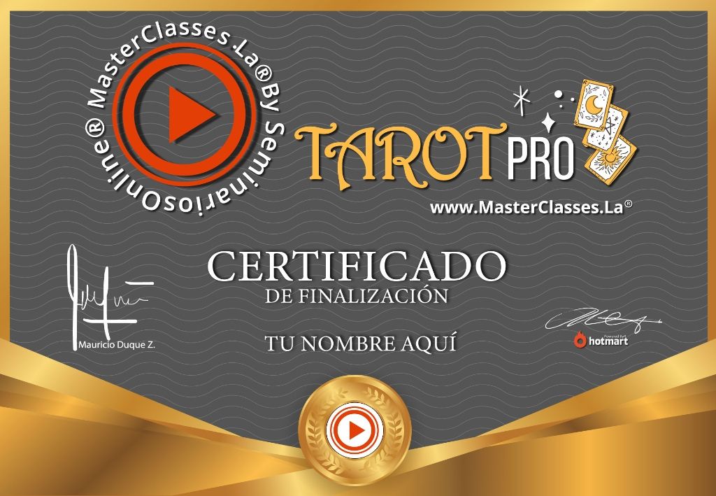 ¡Aprende a interpretar y consultar las cartas del Tarot con el curso Tarot PRO! En menos de 30 días, adquirirás el conocimiento necesario para ayudar a las personas con sus dudas, duelos y sueños mientras ganas dinero. Conoce el significado de las 78 cartas del Tarot de Rider Waite, aprende a interpretar los mensajes ocultos de los arcanos mayores y menores, y descubre cómo responder las preguntas de tus clientes de manera adecuada. Con el certificado avalado por Hotmart y Seminarios Online, podrás comenzar una carrera profesional en lectura de cartas. ¡No pierdas esta oportunidad y únete al curso Tarot PRO ahora mismo!