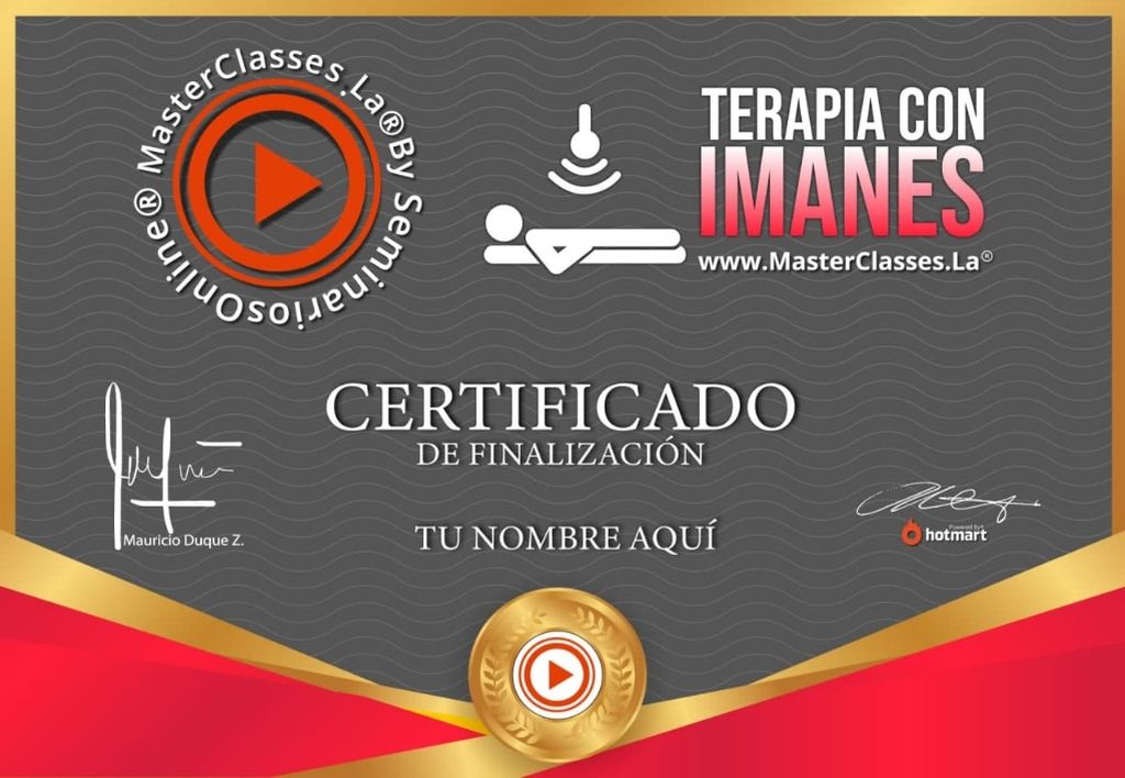 Descubre el poder del biomagnetismo y aprende a equilibrar tu mente, emociones y energía vital con el programa de Terapia con Imanes. Aprenderás la anatomía de los órganos, cómo funciona el cuerpo humano y cómo utilizar la terapia con imanes de manera efectiva. Además, conocerás la relación entre el magnetismo y los seres humanos, equilibrarás tus emociones y aprenderás sobre el equilibrio eléctrico corporal. Obtén tu certificado avalado por Hotmart y Seminarios Online y comienza a transformar tu vida hacia una mayor prosperidad y salud. Desarrollado por el especialista en Terapias Magnéticas y Nutricionista, Lic. Gersson Lopez.